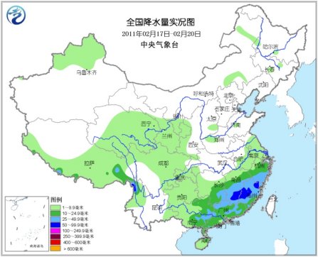 中新网2月20日电 中央气象台预计,南方大部地区下周阴雨将持续,气温变化平稳;北方冷空气活动频繁,先弱后强,24~26日淮河以北地区将出现4~6℃降温,华北、黄淮等气象旱区有下雨(雪),有利于缓和旱情。