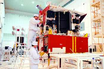 中新网12月23日电 据中国航天报报道,备受瞩目的中国探月卫星"嫦娥一号"在顺利完成大型热试验后,即将进行出厂前的可靠性试验工作。(陈国英)
