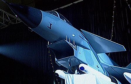 记者在新闻发布会现场从新闻纪录影片中目睹了“新一代歼10”战斗机的风采。只看到在蓝天白云下,两架铁灰色的歼10战斗机短距滑跑,同时跃起,天空上,它们时而腾跃、俯冲,像雄鹰般迅猛;时而盘旋、翻滚,好似飞燕般灵巧。