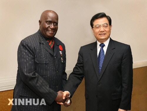 胡锦涛主席亲切地对卡翁达说:“你是中国人民的老朋友,你和毛泽东主席、周恩来总理、邓小平同志等老一辈中国领导人都结下了深厚友谊,我很高兴今天见到你。”