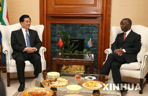 姆贝基完全赞同胡锦涛提出的推动南中战略伙伴关系发展的建议。他说,经济上,中国是南非最重要的合作伙伴之一;政治上,同中国进行磋商和合作是南非应对各种挑战的财富。中国对非洲的关注和合作对非洲实现复兴意义重大。他希望双方深化贸易、投资、技术、农业、资源、人文领域的合作,加强在国际和地区问题上的磋商。