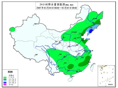 受逐渐加强的西南暖湿气流和冷空气的共同影响,未来两天,从西北地区东部自西向东,中国中东部地区将有一次明显的降水天气过程,华北、黄淮、江淮、江南等地将有中到大雨,黄淮和江淮中东部的部分地区有暴雨。另外,3日夜间至5日白天,东北地区中南部和东部也将有中到大雨或雨夹雪,吉林东部、黑龙江东部的部分地区有大到暴雪。这场降水对缓和北方地区的旱情将十分有利。