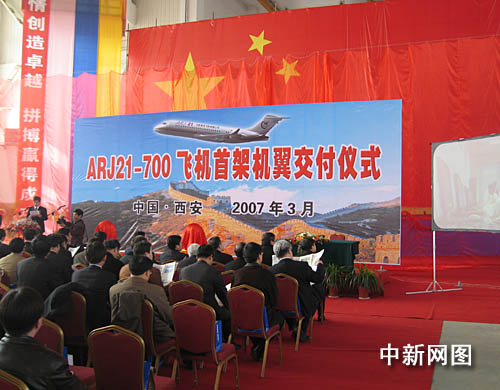 中新社西安三月七日电 (记者 冽玮 张珂)今天上午,中国新型涡扇支线飞机ARJ21首架机翼和中机身部件在中国一航西飞集团公司顺利交付。这项长度最大、制造难度最为复杂的机翼大部件的交付,标志拥有中国自主知识产权的ARJ21飞机研制取得突破性进展。