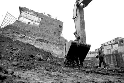 昨日上午,记者再次来到位于重庆九龙坡区杨家坪步行街附近的拆迁现场。由于房主杨武前天的重新入住,很多从此路过的百姓走到这里都会驻足观瞧。