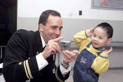 2004年11月17日,英国第一海务大臣阿兰·韦斯特上将和夫人一行6人访问上海。为了接待好这位4年前曾访问过上海的老客人,基地领导决定:“一定要让老朋友的访问取得新成果!”外事及时调整了接待计划,并有针对性安排参观和介绍情况。访问期间,基地领导还陪同韦斯特上将参观了我国自行研制的新型导弹护卫舰、某型舰艇生产线和修理线、某部信息化基础建设等。这位访问过十多个国家的英国海军上将连连称赞:我这次对中国的国防政策有了全新认识,中国海军的建设思想是先进的,中国海军一定会成为维护世界和平的重要力量!(摄影并撰文/吴寒月 记者/黄彩虹)