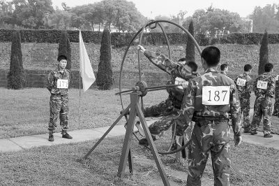 飞行学员体能训练有一个特色项目——“活动滚轮”和“活动旋梯”。旋转,是横在飞行学员面前一道难以逾越的“鬼门关”。通过这项训练可以模拟飞行加速度,锻炼学员的抗眩晕能力,提高学员的操纵能力,极富挑战性。
