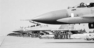 上午8时,“红军”数架新型战机相继升空,向“敌”目标奔袭。
