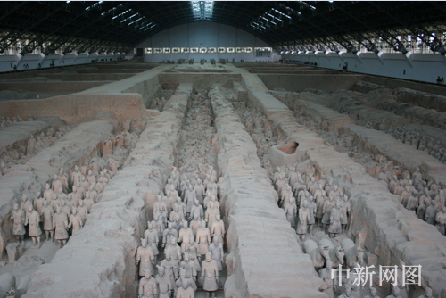 中新网4月9日电 一项对外国人对中国了解程度的调查显示,秦兵马俑的知名度仅次于长城,位居第二。昨天,“首届中国网络媒体陕西行”采访团感受了“世界第八大奇迹”的恢宏壮观。然而这么宝贵的文物却天天与游客如此“亲密接触”,呼吸着和游人同样的空气,不停地被闪光灯照射着。陕西省委宣传部网络处副处长贺晋东不禁感慨:如此“保护”,秦兵马俑很有可能仅仅只能满足当代人好奇心。