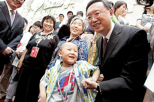今天上午,中国外交部长杨洁篪自上任以来首度在“公众开放日”活动中亮相。