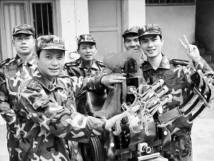 野外练兵场上,一场解救人质的战斗打响了,自贡市民兵应急分队快速出击。