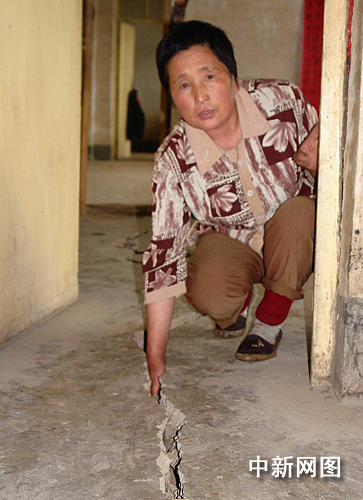 在村头的郭保康家,他家房屋受到的损害最为严重,他告诉记者,房子是1999年建的,不知道什么时候,邻近的水南村人开了黑口子挖煤,房子下面都掏空了。房顶上,地面上6、7公分的裂缝一裂到头。足以用触目惊心来形容那个场面。