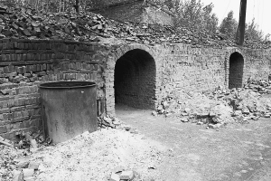 一排低矮的小黑窑,里面还有没来得及搬走的砖坯,窑口堆满了烧制变形了的次品砖;一堆半支半立的工棚,棚内打地铺用的纸板还留在原处。窑口的煤泥堆还没来得及用完,旁边尚未烧制的砖坯整齐码放……