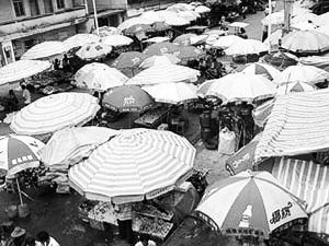 记者在张华的红太阳伞下站了一会,不几分钟便满身大汗。邻近的摊主纷纷说:“我这两把伞,是5月初花40元从集贸市场买的,遮阳、挡风挡雨都挺好,丢掉真有些可惜。”“我们都是小本买卖,换新伞不划算,也没那个必要。”