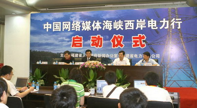 中新网6月17日电 为期七天的“中国网络媒体海峡西岸电力行”活动今日在福州启动。中共福建省委宣传部副部长、福建省政府新闻办主任朱清,福建省电力有限公司党组书记、总经理李卫东,福建省政府新闻办副主任卢承圣等领导出席启动仪式。福建省电力有限公司总经理助理苏振华主持启动仪式。