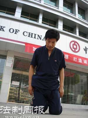 “我当时被打得昏昏沉沉的,那么多人看着我下跪好丢脸啊!”邓镪保说,后来他又被拖到银行的营业大厅内,再次被逼下跪。“这时候他们没有打我了。”邓说,在营业厅的工作人员劝说下,对方逼迫他下跪不到两分钟。
