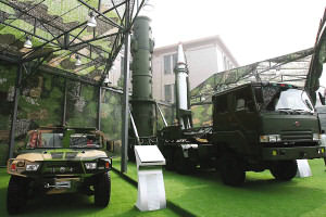 在室外二号武器装备展区,观众可以看到“飞豹”歼击轰炸机、新型中程地空导弹和3139号导弹艇。