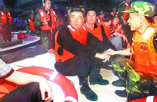 电闪雷鸣,山摇地动,一场罕见的特大暴雨突袭山城。从17日下午开始,沙坪坝区陈家桥镇降雨量达400毫米,场镇被淹,水最深处达5米,来不及转移的3000余户、近万名群众被困。灾情发生后,重庆市委书记汪洋、市长王鸿举立即率部队、公安、卫生、国土房管、民政等单位火速赶赴现场,指挥抢险救灾。