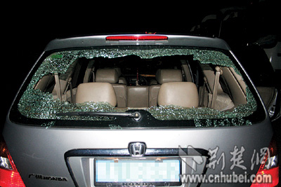 昨晚7时许,家住体育馆路的戴师傅在八一路某饭店吃饭,夫人开着一辆奥德赛商务车到饭店接他。突然面前一道闪光,听见喀嚓一声巨响,他才发现车的后窗玻璃已完全粉碎,侧窗也被震裂,所幸两人都未受伤。
