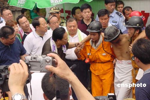 中新网陕县8月1日电(记者 朱晓娟 李凌 张力华)经过各方四天的不懈努力,今天中午十一时三十八分,备受关注的河南陕县矿难第一个被困矿工成功救出,现场一片欢呼。