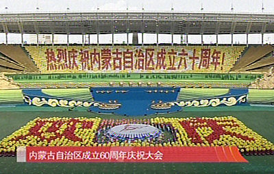 中新网8月8日电 内蒙古自治区成立60周年庆祝大会今天下午在呼和浩特举行。以中共中央政治局常委、国家副主席曾庆红为团长的中央代表团出席了庆祝大会。
