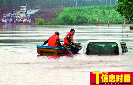 受热带风暴影响,8月9日至11日,广东湛江地区普降暴雨发生洪水灾害,其中以雷州半岛覃斗镇和北和镇受灾最为严重,已经造成数千名群众被洪水围困达一天一夜,缺少食品等生活物资,情况十分紧急。昨日上午,湛江市市委书记徐少华等前往受灾严重的覃斗镇迈克村救灾,也被洪水围困在覃斗镇内。