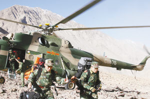 13日上午9时50分,直升机搭载两名俄搜救专家、和田某部参谋长邝德旺、武警某支队副支队长张全等人,紧急飞往两处发现点进行空中地形勘察,他们最后确定了使用直升机空中远程输送,机降投送人员进行地面搜寻的方案。