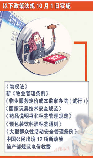 涉及人民群众切身利益、关系着国计民生的《中华人民共和国物权法》自2007年10月1日起施行。