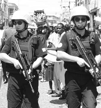2006年9月至11月,海地太子港国家一号公路接连发生60多起抢劫、绑架事件。同年12月22日,联合国海地稳定特派团组织开展代号“新森林”的联合清剿行动,中国防暴队派出数十名队员和两辆装甲车参与行动。