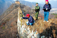 昨天,第四阶段北京段长城踏查工作在延庆县永宁镇马蹄湾村正式展开(见上图)。至此,北京段长城的测绘工作已经完成一半,在前期的测绘中,测绘专家和市文物专家发现了许多关于长城的新信息,如实际现存量多于此前预估数,统一朝代的长城的不同结构以及发现了多处窑址等,这些都是此前关于长城文献的记载中所没有的。本阶段预计将有怀柔、平谷、门头沟三个区基本完成现场调查测绘工作,预计全部测绘将在明年结束。届时,北京段长城的具体、翔实数据将会第一次明确。