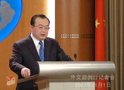 中新网11月1日电 2007年11月1日下午,外交部发言人刘建超举行例行记者会,就六方会谈、缅甸问题、伊朗核问题等回答记者提问。