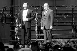 除了李叔同,李岚清尊敬的中国音乐家还有小提琴家马思聪和二胡演奏家华彦钧,《思乡曲》和《二泉映月》是两人各自的代表作。在讲座现场,李岚清还与男中音歌唱家张峰一同深情演唱了由刘半农作词、赵元任作曲的《教我如何不想他》。“有人把音乐看作技巧,而不是审美的乐趣,所以他们听不懂。其实,听不懂是因为他们听少了,现在很多演奏家都用通俗的方式来演绎经典———‘钢琴王子’克莱德曼的《致爱丽丝》其实是贝多芬的作品,S.H.E的《不想长大》用了莫扎特《第四十交响曲》中的旋律。我不是说古典作品不能被借用,但是对经典音乐的恶搞是极不妥当的。中国音乐家要用现代人听得懂的语言,用传统的中国文化来写音乐,谭盾、叶小纲做的就是这样的事情……不能随意让经典音乐PK通俗音乐。”