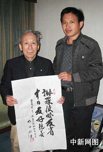 原日本侵华日军59师团45中队退伍老兵盐谷保芳日前再次来到中国山东泰安抗日烈士陵园谢罪,并向陵园敬献了“谢罪侵略反省,中日友好亲善”牌匾,以特殊方式传达日本人民致力中日友好的信息。