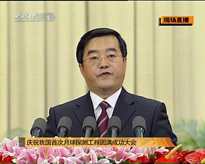 中新网12月12日电 中国首次月球探测工程成功庆祝大会今天上午在北京人民大会堂举行。月球探测工程领导小组组长、国防科工委主任张庆伟在大会上称,中国首次月球探测工程是自主创新的重大科技工程,是体现现代科学管理要求的大型复杂系统工程,是凝聚、培养和造就高素质航天科技队伍的人才工程。