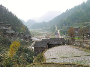 这个村几乎所有人都还住着木头吊脚楼。他们从山上砍取杉木,涂上桐油,搭建起这种传统房屋。即使到2005年,村里还有6户人家屋顶盖的不是瓦片,而是长满青苔的杉树皮。这些因风吹雨打而变成黑色的吊脚楼里,总共只有60台彩电,16部电话,20部手机,5台洗衣机。