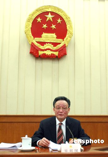 吴邦国强调保障香港民主制度健康发展。中新社发 廖文静 摄