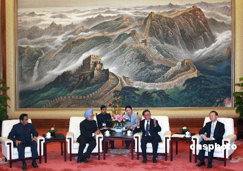 中新网北京1月15日电(记者 王岩)中国全国人大常委会委员长吴邦国今天下午在北京人民大会堂会见了来访的印度总理辛格。
