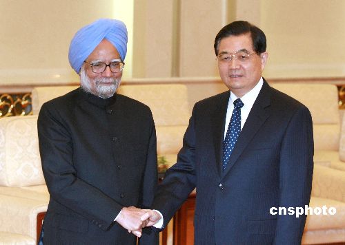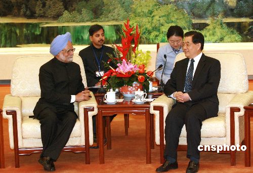 中新网北京1月15日电(记者 王岩)中国国家主席胡锦涛今天下午在北京人民大会堂会见了来访的印度总理曼莫汉·辛格。