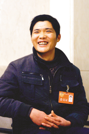 谢松洪,25岁,17岁进入军营,退伍后进入新世纪保安部工作。今年作为农民工代表,当选市人大代表。
