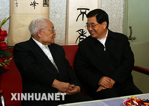 胡锦涛来到中关村一个宁静的小区,走进吴文俊简朴的居室,向这位老科学家表示亲切的问候。