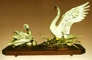 唐龙彬:摆在面前的这一对天鹅礼品叫瓷塑大天鹅,这是美国前总统尼克松在1972年2月21号来访赠送给毛泽东主席的一个国礼。可能大家都了解,当时美国总统来中国访问,这个事情本身就是一件举世瞩目的大事,因此当时中国也好,美国也好都非常重视这一次尼克松来华访问,而且把这次访问看作终端中美两国友好交往,重新打开这个大门的一个重要事情来看,所以当时双方政府都做了充分准备。当然首先是在政治上的准备, 其中双方交换的国礼也是非常重视的。当时我是外交部礼宾司接待处处长,从头到尾都参与了这项接待和筹备工作,也包括在筹备国礼方面也参与了一些具体工作。当时美方是非常重视,尼克松本人亲自抓美方赠送给毛泽东主席的国礼的选择。