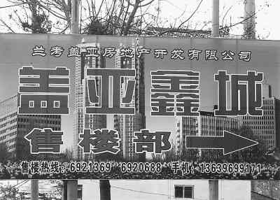 售楼部竖立的大幅广告牌。