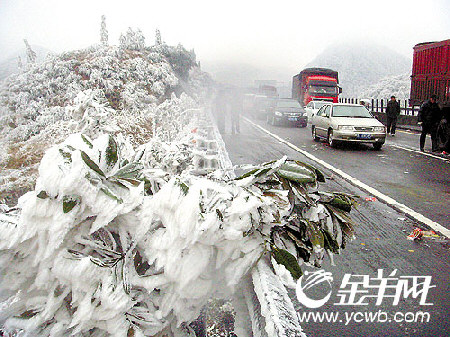 今天上午,京珠高速路面结冰情况仍然严重(彭卫/摄)