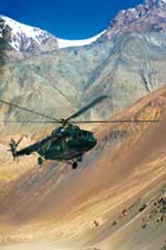 “最难飞到的是什布奇边防连”,飞行员说。这个距离首都最远的边防连处于四周全是高山的山谷中,直升机降落时要慢慢地像片树叶掉下去,起飞时又盘旋着上升高度,小心翼翼地防止旋翼触到大山上。