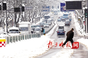 昨天上午,久违的太阳终于探出了头,这让很多市民都很欣喜。太阳下,路边的积雪开始慢慢地融化,但是由于一直到11点前,南京的温度一直保持在0℃之下,所以地面很容易结冰。俗话说,“下雪不冷化雪冷”,从今天开始的未来三天内,本省淮北地区的最低温度降到-5~-6℃,沿江苏南地区的温度-2~-3℃,南京的最低温度维持在-3~-4℃。气象部门继续发布道路结冰橙色预警信号,未来几天,仍会出现持续性的道路结冰,希望市民出行时应提前做好准备,留出足够的时间,选择合适的交通工具。