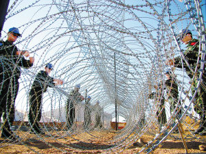 在荷枪实弹的非盟士兵护卫下,中国维和官兵迅速投入忙碌的施工作业当中。保障沙石的车辆来回穿梭,卷起阵阵烟尘;构建防御工事的工地上,铁丝网和野战防御网墙一米米向前推进;另外一侧,一顶顶帐篷也搭建起来……为了赶进度,官兵们每次都科学分工、齐心协力,尽量提高作业效率。尽管这样,在现场指挥的马建明还是有点儿着急:“大家都加把劲儿!不能让后续部队到了连住的地方都没有啊!”