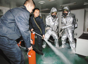 舱室灭火训练(王松岐/摄)