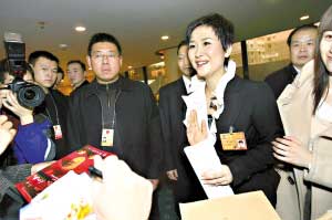 李:这次我被分配到妇联界别,我看到我们界别里面有我们社会各界的精英,她们可能是女将军、女科学家、女作家,还有女艺术家,我们希望在这个节日里为我们妇女建立合法的保障机制,与全社会共享我们今天经济的成果,为我们妇女过一个非常美好的节日祝福她们。