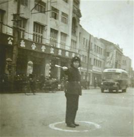 1958年3月8日,女交警第一天上路执勤。民生路口和江汉路口,人山人海。人们争相目睹:开天辟地头一遭,女交警站在街头指挥交通咧!