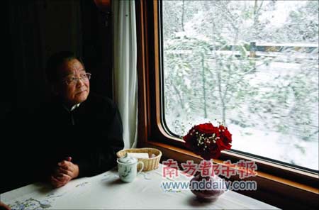武汉当时气温在零下,下着小雪,温家宝直接从机场去火车站。铁道部临时调派的火车还没到位,总理只好在火车站贵宾室等待。