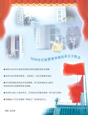 “这次改革真正启动了行政管理体制向提供公共服务、理顺部门职责、转变政府职能和突出法治保障4方面的转移。”中国政法大学副校长马怀德教授说。